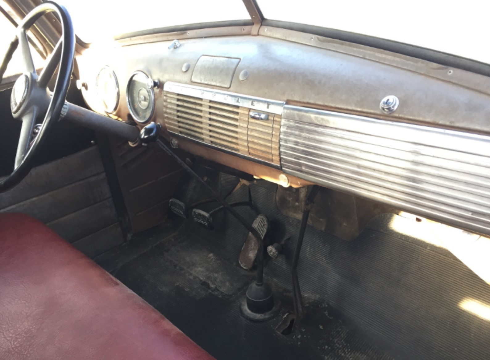 Think about the 49 Chevy grain truck. For the most part minimal instrumentation. Minimal controls. Basic comfort. Safety-the doors do lock. Seat belts were still at least a decade away. To start the engine you pushed a starter pedal, possibly after pulling the choke out a little.